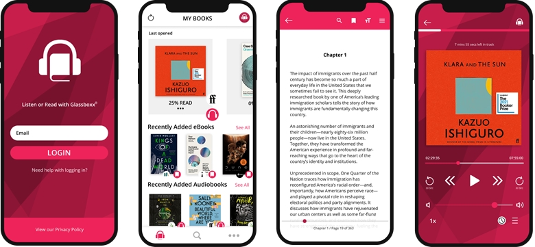 This is a demo site showing how using Glassboxx from Firsty Group, eBooks and audiobooks purchased by the end customer are fulfilled directly to the customer via the Glassboxx apps.